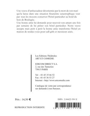 Une veuve d'ambassadeur désorientée par la mort de son mari qui la laisse dans une situation financière catastrophique veut par tous les moyens conserver l'hôtel particulier au bord du bois de Boulogne. Une bonne amie lui demande pour recevoir son amant une fois par semaine de lui prêter son hôtel particulier. Notre veuve accepte mais petit à petit la bonne amie transforme l'hôtel en maison de rendez-vous pour call-girls et messieurs aisés.