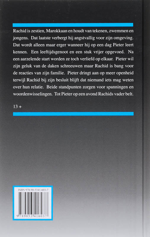 Rachid is zestien, Marokkaan en houdt van tekenen, zwemmen en jongens. Dat laatste verbergt hij angstvallig voor zijn omgeving. Dat wordt alleen maar erger wanneer hij op een dag Pieter leert kennen. Een leeftijdsgenoot en een stuk vrijer opgevoed. Na een aarzelende start worden ze toch verliefd op elkaar. Pieter wil zijn geluk van de daken schreeuwen maar Rachid is bang voor de reacties van zijn familie. Pieter dringt aan op meer openheid terwijl Rachid bij zijn besluit blijft dat niemand iets mag weten over hun relatie. Beide standpunten zorgen voor spanningen en woordenwisselingen. Tot Pieter op een avond Rachids vader belt.