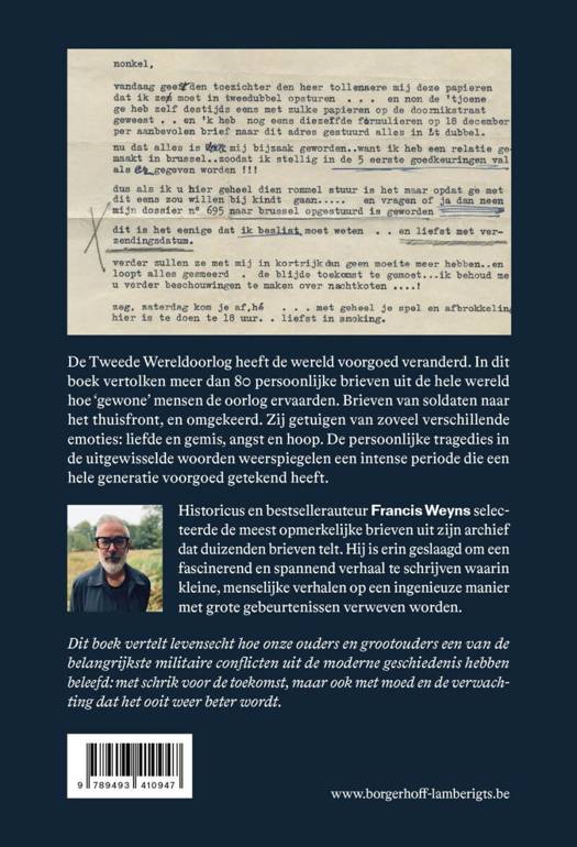 Auteur Francis Weyns putte voor het schrijven van dit boek uit zijn uitgebreide brievenarchief en selecteerde uit de duizenden brieven die hij in de loop van de jaren verzamelde 73 brieven waarmee de auteur er als geen ander in slaagt om het persoonlijk en menselijke aspect van de Tweede Wereldoorlog bloot te leggen.