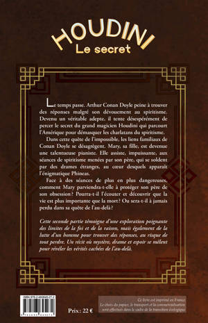 Résumé : Le temps passe. Arthur Conan Doyle peine à trouver des réponses malgré son dévouement au spiritisme. Devenu un véritable adepte, il tente désespérément de percer le secret du grand magicien Houdini qui parcourt l’Amérique pour démasquer les charlatans du spiritisme. Dans cette quête de l’impossible, les liens familiaux de Conan Doyle se désagrègent. Mary, sa fille, est devenue une talentueuse pianiste. Elle assiste, impuissante, aux séances de spiritisme menées par son père, qui se soldent par des drames étranges, au cœur desquels apparaît l’énigmatique Phineas. Face à des séances de plus en plus dangereuses, comment Mary parviendra-t-elle à protéger son père de son obsession ? Pourra-t-il l’écouter et découvrir que la vie est plus importante que la mort ? Ou sera-t-il à jamais perdu dans sa quête de l’au-delà ?