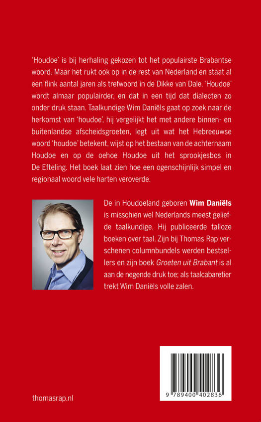 ‘Houdoe’ is bij herhaling gekozen tot het populairste Brabantse woord. Maar het rukt ook op in de rest van Nederland en staat al een flink aantal jaren als trefwoord in de Dikke van Dale. ‘Houdoe’ wordt almaar populairder, en dat in een tijd dat dialecten zo onder druk staan. Taalkundige Wim Daniëls gaat op zoek naar de herkomst van ‘houdoe’, hij vergelijkt het met andere binnen- en buitenlandse afscheidsgroeten, legt uit wat het Hebreeuwse woord ‘houdoe’ betekent, wijst op het bestaan van de achternaam Houdoe en op de oehoe Houdoe uit het sprookjesbos in De Efteling. Het boek laat zien hoe een ogenschijnlijk simpel en regionaal woord zo'n bijzondere reikwijdte kan hebben. Wie nog niet voor 'houdoe' viel, zal dat beslist door dit boek doen.