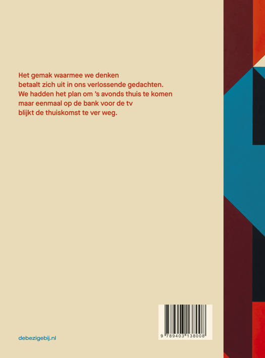 Ons robuuste geloof in de vrije wil, het vernuft en de maakbaarheid ten spijt is het nog altijd niet eenvoudig het houvast te vinden dat ons door de dagen heen kan helpen. En is dat houvast toch gevonden, dan blijkt het net zo vergankelijk als het leven zelf. Zo wankelen we heen en weer tussen wat ons bevestigt en wat ons aan het twijfelen brengt. In Houvastvergankelijkheidsleer laat Jan Baeke zien hoe wij proberen de twijfel van ons af te praten, de betrekkelijkheid te bezweren met dooddoeners en constateringen. De vele kanten van de houvastvergankelijkheid worden hier met poëtische precisie getoond.