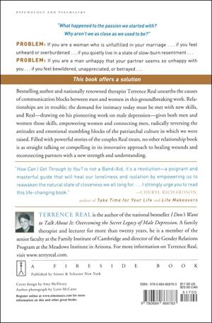 From "a superstar couples therapist...and a maestro of interpersonal drama" (The New York Times), this book offers solutions for attaining the healthy communication and emotional intimacy we all desire in our relationships. Bestselling author and nationally renowned therapist Terry Real unearths the causes of communication breakdowns between men and women in this groundbreaking guide to relationship repair. Relationships are in trouble; the demand for intimacy today must be met with new skills, and Real--drawing on his pioneering work on male depression--gives both men and women those skills, empowering women and connecting men, radically reversing the attitudes and emotional stumbling blocks of the patriarchal culture in which we were raised.