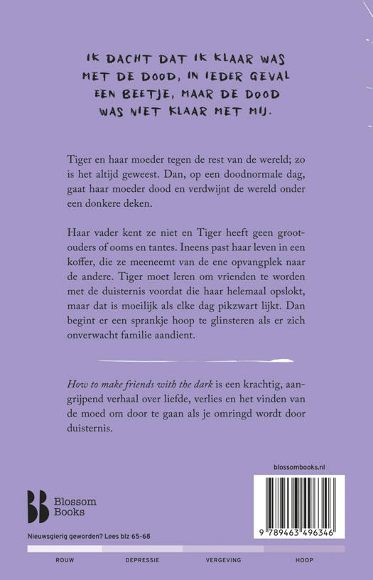 In How to make friends with the dark verandert het leven van de zestienjarige Tiger drastisch na één telefoontje: haar moeder is dood. Het verlies laat een grote leegte achter in haar normaliter rustige leventje. Glasgow omschrijft als geen ander hoe het is om een geliefde te verliezen en om te gaan met de donkerte die volgt.