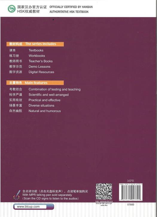 Une nouvelle collection de manuels destinés à apprendre le chinois à partir du vocabulaire et des points de grammaire du HSK et à se préparer à ces examens, d'une manière ludique et progressive. Les livres sont illustrés de photos en couleur, les dialogues sont toujours en chinois et pinyin, suivis de la traduction en anglais puis uniquement en chinois à partir du niveau 5. Un CD MP3 est fourni dans chaque manuel et chaque cahier d'exercices.