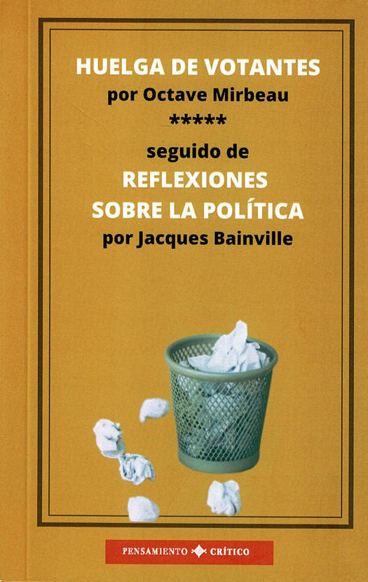 Una cosa me asombra prodigiosamente - me atrevería a decir que me deja estupefacto - es que a la hora científica en la que escribo, después de los innumerables experimentos, después de los escándalos cotidianos, todavía pueda existir en nuestra querida Francia (como dicen en la Comisión de Presupuestos) un votante, un solo votante, ese animal irracional, inorgánico, alucinante, que acepte perturbarse a sí mismo de sus negocios, de sus sueños o de sus placeres, para votar a favor de alguien o de algo. Octave MirbeauEn medio del horror universal, el pensamiento avanza hacia tiempos mejores. Construye un mundo en el que la carnicería sería desconocida. No es la primera vez que el espectáculo de la guerra suscita el deseo de una paz en adelante eterna. No es la primera vez que los hombres tratan de fundar instituciones que impidan a los pueblos desgarrarse unos a otros. J. BAINVILLE