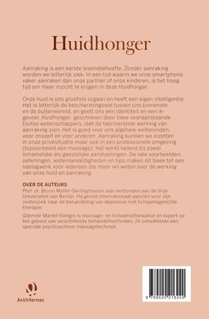 Huidhonger van Bruno Müller-Oerlinghausen en Gabriele Mariell Kiebgis is een absolute aanrader voor iedereen die meer wil weten over het belang van aanraking. Dat belang is namelijk groot: als we te weinig huidcontact hebben, kunnen we letterlijk ziek worden, aanraking is een eerste levensbehoefte. Een aai, een kus, een knuffel, de kleinste aanraking kan al heel veel effect hebben, zowel voor de gever als de ontvanger. Dit boek laat de fascinerende en helende werking van aanraking zien en hoe je deze kunt inzetten. Voor jezelf en anderen, bij diverse aandoeningen en voor je algehele welbevinden. Het staat vol praktische tips, oefeningen, voorbeelden van manieren van aanraken en verhalen uit de praktijk. Aanraking helpt je letterlijk en figuurlijk beter in je vel te zitten, het is communicatie die onder je huid gaat.