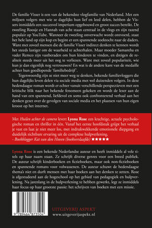 Met Huilen achter de camera levert Lyona Rose een krachtige, actuele psychologische roman en thriller in één. Vanaf het eerste hoofdstuk grijpt het verhaal je vast en laat je niet meer los, met indrukwekkende emotionele diepgang en duidelijk zichtbare ervaring uit de complexe hulpverlening.