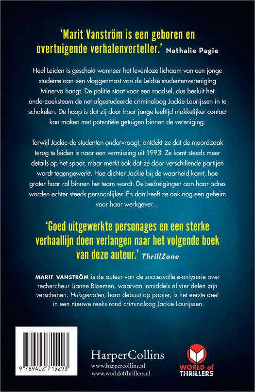 Huisgenoten is het eerste deel in een nieuwe serie van Marit Vanström: Nederlandse crime met Scandinavische allure.