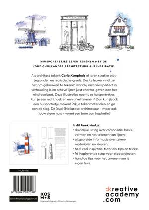 Laat je inspireren door de (oud-)Hollandse architectuur en teken de leukste huisportretjes! Als architect tekent Carla Kamphuis al jaren strakke plattegronden en realistische gevels. Maar in je vrije tijd is het des te leuker om de teugels te laten vieren en huizen te tekenen die niet perfect in verhouding zijn – en die juist hun charme ontlenen aan een scheve lijn.
