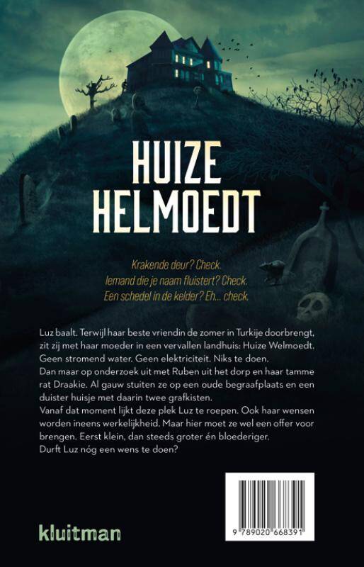 Luz baalt. Terwijl haar beste vriendin de zomer in Turkije doorbrengt, zit zij met haar moeder in een vervallen landhuis: Huize Welmoedt. Geen stromend water. Geen elektriciteit. Niks te doen. Dan maar op onderzoek uit met Ruben uit het dorp en haar tamme rat Draakie. Al gauw stuiten ze op een oude begraafplaats en een duister huisje met daarin twee grafkisten. Vanaf dat moment lijkt deze plek Luz te roepen. Ook haar wensen worden ineens werkelijkheid. Maar hier moet ze wel een offer voor brengen. Eerst klein, dan steeds groter én bloederiger. Durft Luz nóg een wens te doen?