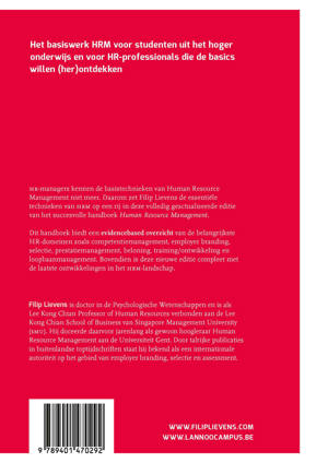 HR-managers kennen de basistechnieken van Human Resource Management niet meer. Daarom zet Filip Lievens de essentiële technieken van HRM op een rij in deze volledig geactualiseerde editie van het succesvolle handboek Human Resource Management.