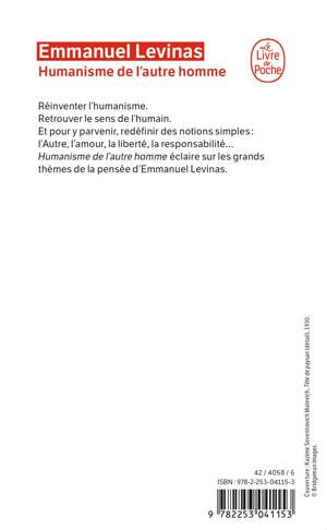 Réinventer l'humanisme. Retrouver le sens de l'humain. Et pour y parvenir, redéfinir des notions simples l'Autre, l'amour, la liberté, la responsabilité... Humanisme de l'autre homme éclaire les grands thèmes de la pensée d'Emmanuel Lévinas. Texte intégral
