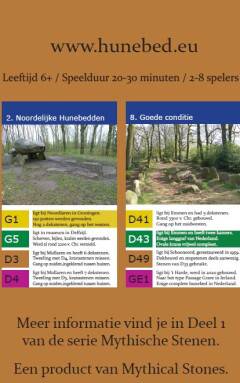 Een kwartetspel met 60 foto's en beschrijvingen van de hunebedden in Nederland. Spelenderwijs leer je alle hunebedden en hun kenmerken kennen. Leeftijd 6+ / Speelduur 20-30 minuten / 2-6 spelers Meer informatie vind je in Deel 1 van de serie Mythische Stenen. Een product van Mythical Stones.