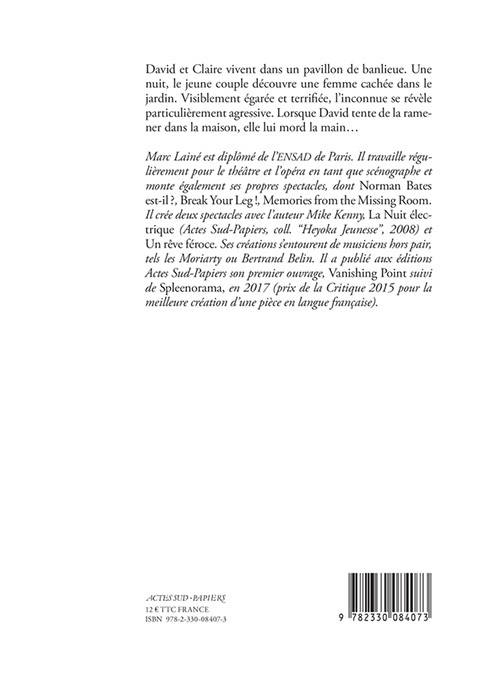 «Marc Lainé est diplômé de l'ENSAD de Paris. Il travaille régulièrement pour le théâtre et l'opéra en tant que scénographe et monte également ses propres specttacles, dont »Norman Bates est-il ?«, »Break Your Leg !«, »Memories from the Missing Room«. Il crée deux spectacles avec l'auteur Mike Kenny, »La Nuit électrique« (Actes Sud-Papiers, coll. "Heyoka Jeunesse", 2008) et »Un rêve féroce«. Ses créations s'entourent de musiciens hors pair, tels les Moriarty ou Bertrand Belin. Il a publié aux éditions Actes Sud-Papiers son premier ouvrage, »Vanishing Point« suivi de »Spleenorama«, en 2017 (prix de la Critique 2015 pour la meilleure création d'une pièce en langue française).»