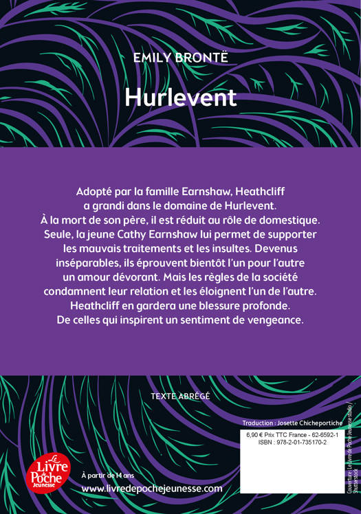 Cette nouvelle traduction abrégée du Livre de Poche Jeunesse, initialement parue sous le titre Wuthering Heights, reprend, dans la présente édition, le titre original, Les Hauts de Hurle-Vent, inventé par Frédéric Delebecque dans sa traduction parue en 1925.