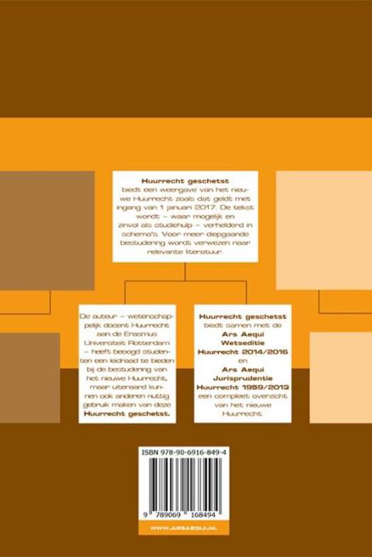 Huurrecht geschetst biedt een weergave van het nieuwe Huurrecht zoals dat geldt met ingang van 1 januari 2017. De tekst wordt - waar mogelijk en zinvol als studiehulp - verhelderd in schema's. Voor meer diepgaande bestudering wordt verwezen naar relevante literatuur.