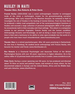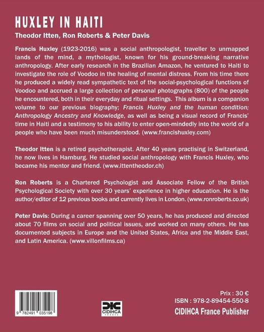 Francis Huxley (1923-2016) était un anthropologue social, un voyageur aux terres non cartographiées de l'esprit, un mythologue, connu pour son anthropologie narrative révolutionnaire. Après des premières recherches en Amazonie brésilienne, il s'est aventuré en Haïti pour enquêter sur le rôle du vaudou dans la guérison de la détresse mentale. Depuis son séjour là-bas, il a produit un texte compréhensif largement lu sur les fonctions socio-psychologiques du vaudou et a accumulé une grande collection de photographies personnelles (800) des personnes qu'il a rencontrées, à la fois dans leur cadre quotidien et rituel. Cet album est un volume complémentaire à notre biographie précédente : Francis Huxley and the human condition ; Anthropology Ancestry and Knowledge, en plus d'être un enregistrement visuel du temps de François en Haïti et un témoignage de sa capacité à entrer avec ouverture d'esprit dans le monde d'un peuple qui a été très incompris.