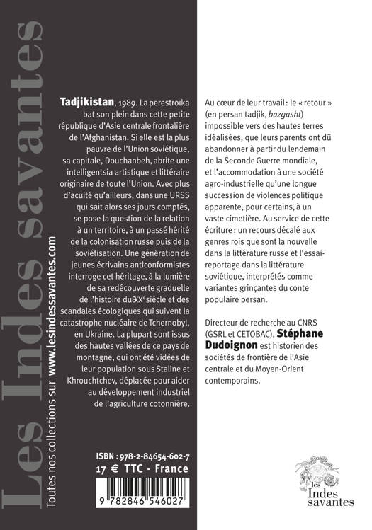 Tadjikistan, 1989. La perestroïka bat son plein dans cette petite république d’Asie centrale frontalière de l’Afghanistan. Si elle est la plus pauvre de l’Union soviétique,  sa capitale, Douchanbeh, abrite une intelligentsia artistique et littéraire originaire de toute l’Union. Avec plus d’acuité qu’ailleurs, dans une URSS qui sait alors ses jours comptés, se pose la question de la relation à un territoire, à un passé hérité de la colonisation russe puis de la soviétisation. Une génération de jeunes écrivains anticonformistes interroge cet héritage, à la lumière de sa redécouverte graduelle de l’histoire du xxe siècle et des scandales écologiques qui suivent la catastrophe nucléaire de Tchernobyl, en Ukraine. La plupart sont issus des hautes vallées de ce pays de montagne, qui ont été vidées de leur population sous Staline et Khrouchtchev, déplacée pour aider au développement industriel de l’agriculture cotonnière.