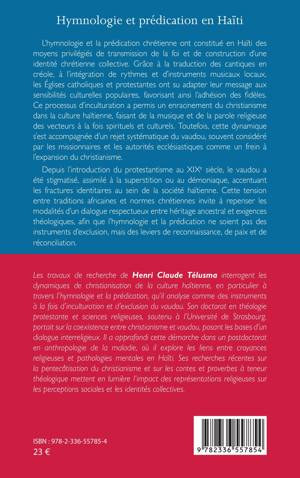 L'hymnologie et la prédication chrétienne ont constitué en Haïti des moyens privilégiés de transmission de la foi et de construction d'une identité chrétienne collective. Grâce à la traduction des cantiques en créole, à l'intégration de rythmes et d'instruments musicaux locaux, les Églises catholiques et protestantes ont su adapter leur message aux sensibilités culturelles populaires, favorisant ainsi l'adhésion des fidèles. Ce processus d'inculturation a permis un enracinement du christianisme dans la culture haïtienne, faisant de la musique et de la parole religieuse des vecteurs à la fois spirituels et culturels. Toutefois, cette dynamique s'est accompagnée d'un rejet systématique du vaudou, souvent considéré par les missionnaires et les autorités ecclésiastiques comme un frein à l'expansion du christianisme. Depuis l'introduction du protestantisme au XIXe siècle, le vaudou a été stigmatisé, assimilé à la superstition ou au démoniaque, accentuant les fractures identitaires au sein de la société haïtienne. Cette tension entre traditions africaines et normes chrétiennes invite à repenser les modalités d'un dialogue respectueux entre héritage ancestral et exigences théologiques, afin que l'hymnologie et la prédication ne soient pas des instruments d'exclusion, mais des leviers de reconnaissance, de paix et de réconciliation.
