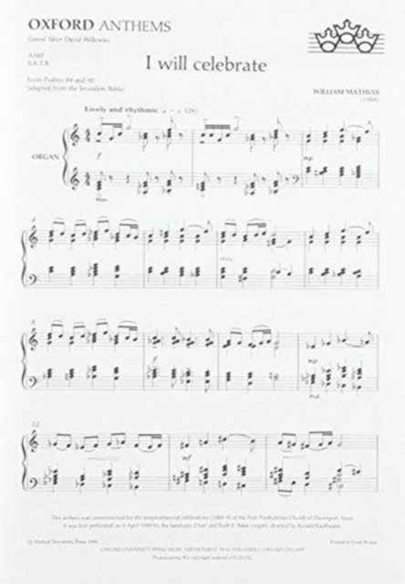 for SATB and organA festive anthem with a lively organ part, this piece is not difficult, and an exhilarating work to perform. It is particularly appropriate for services of praise and thanksgiving.