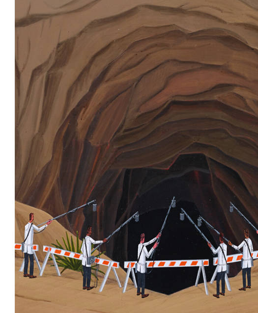 Over the past 20 years, American painter Ian Davis has created a body of work that is just as recognizable as it is enigmatic. In highly narrative, darkly humorous and downright surreal settings, Davis chronicles moments of human gatherings, often immediately before or after a disaster of sorts.- Hordes of supra-individual, faceless figures are arranged in almost ornamental tableaux – reflections of our post-industrial society.