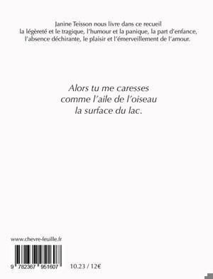 La poésie chante et dit l’amour depuis des millénaires. Mais, ni tout à fait le même, ni tout à fait un autre, chaque amour est unique et universel. Janine Teisson nous livre la légèreté et le tragique, l’humour et la panique, la part d’enfance, l’absence déchirante, le plaisir et l’émerveillement de l’amour dans un recueil plein de fraicheur, éminemment personnel, à travers cent haïkus et treize poèmes plus longs, répartis en neuf chapitres : Aimer ; Ensemble ; Peur ; Doute ; Tendresse ; Absence ; Désaccords ; Le Temps qui passe ; Désir. Une poésie contemporaine, sensible, dans laquelle chacun·e peut se reconnaître. Le recueil est illustré avec les compositions graphiques de Marion Béclu.