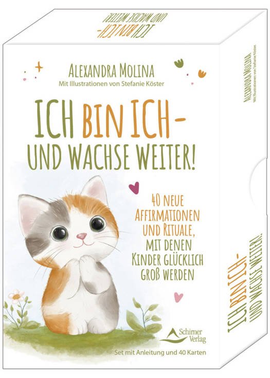 Kinder wachsen jeden Tag - nicht nur körperlich, sondern auch mental! Neue Freundschaften, der Schulstart oder der erste Wackelzahn: Jede Erfahrung erweitert ihre Welt - oder kann sie ins Wanken bringen. Dann brauchen sie Mutmacher, die ihnen helfen, ihre Freude am Großwerden zu bewahren. Das Erfolgskartenset »Ich bin ich!« legte mit kraftvollen Ich-Botschaften den Grundstein für starke Kinderseelen. Der bunte Nachfolger knüpft daran an: mit frischen Affirmationen und weiteren Lieblingsritualen, die Kinder bei Veränderungen begleiten. Ob als Morgenimpuls, kleines Abendritual oder zwischendurch: Tierische Helden wie Waschbär, Eule oder Katze stärken die innere Stimme unserer Kinder und schenken Leichtigkeit, Resilienz, Empathie und Selbstvertrauen.