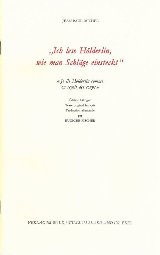 Essai consacré à Hölderlin par le poète français J.-P. Michel.