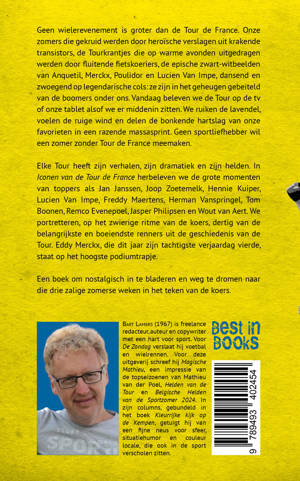 Elke Tour heeft zijn verhalen, zijn dramatiek en zijn helden. In Iconen van de Tour de France herbeleven we de grote momenten van toppers als Jan Janssen, Joop Zoetemelk, Hennie Kuiper, Lucien Van Impe, Freddy Maertens, Herman Vanspringel, Tom Boonen, Remco Evenepoel, Jasper Philipsen en Wout van Aert. We portretteren, op het zwierige ritme van de koers, dertig van de belangrijkste en boeiendste renners uit de geschiedenis van de Tour. Eddy Merckx, die dit jaar zijn tachtigste verjaardag vierde, staat op het hoogste podiumtrapje.