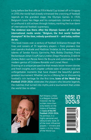 Long before the first official FIFA World Cup kicked off in Uruguay in 1930, the world had already witnessed the crowning of football legends on the grandest stage: the Olympic Games. In 1920, Belgium’s Louis Van Hege and his compatriots claimed a victory so profound it still echoes through history, marking the true dawn of international football supremacy. The evidence was there. After the Olympic Games of 1920, the international media wrote: “Belgium, the first world football champion!” At the time, nobody questioned it — and today, neither do we. This book traces over a century of football brilliance through the lives and careers of 35 legendary players — from pioneers like José Leandro Andrade and Matthias Sindelar, to the revolutionary talents of Sandor Kocsis, Garrincha, Pelé, Bobby Charlton, Franz Beckenbauer, Johan Cruyff, Gary Lineker, Diego Maradona, Zinédine Zidane, Robin van Persie, Kevin De Bruyne and culminating in the modern genius of Cristiano Ronaldo and Lionel Messi. Drawing on a unique perspective that reveals lesser-known stories and fresh insights, each chapter unfolds tales of passion, skill and unforgettable moments that have shaped the beautiful game’s greatest tournament. Whether you’re a lifelong fan or discovering football’s rich heritage for the first time, Icons of the World Cup Football 1920-2026 celebrates the players who became legends, the matches that turned into myths, and a tournament that unites the world like no other.