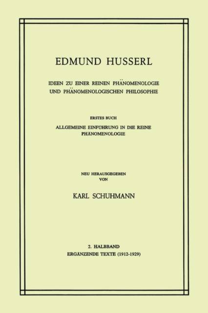In der nunmehr vorliegenden, im Auftrage des Husserl-Archivs von Karl Schuhmann besorgten Neuausgabe des Werkes wird im ersten Halbband allein der Text der zu Lebzeiten Husserls erschienenen Auflagen wiedergegeben, während die sämtlichen handschriftlichen Zusätze des Verfassers im Rahmen der im Zweiten Halbbande zusammengefassten Ergänzenden Texte berücksichtig sind. Die Teilung des Bandes sollte das vergleichende Studium von Urtext und Vorstudien, Bearbeitungen und weitergehenden Entwürfen erleichtern.