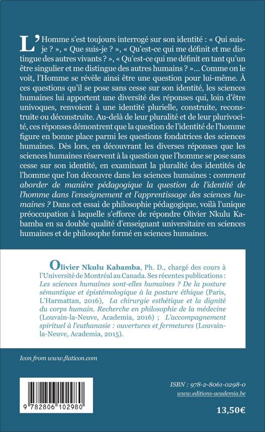 Comment aborder de manière pédagogique la question de l'identité de l'homme dans l'enseignement et l'apprentissage des sciences humaines ? Dans cet essai de philosophie pédagogique, voilà l'unique préoccupation à laquelle s'efforce de répondre Olivier Nkulu Kabamba en sa double qualité d'enseignant universitaire en sciences humaines et de philosophe formé en sciences humaines.