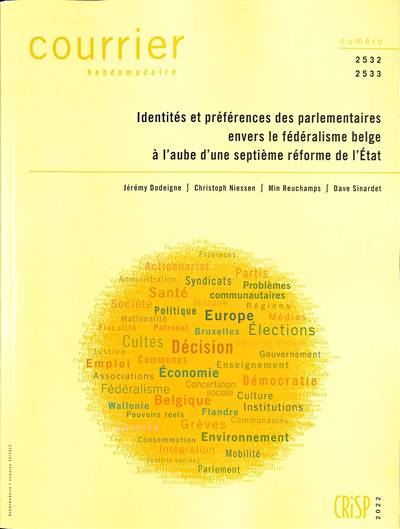 Présentation des résultats d'une enquête menée entre octobre 2020 et février 2021 auprès des 473 parlementaires fédéraux, régionaux et communautaires de Belgique sur leur perception du fédéralisme belge et sur leurs préférences institutionnelles pour le futur. Leurs réponses sont mises en lumière selon différents critères (appartenance linguistique, formation politique, assemblée).