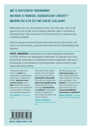Medewerkers die met volle overgave de 'extra mijl' willen gaan, alsof ze zelf eigenaar zijn van de zaak: die kan iedereen gebruiken, zeker in turbulente en disruptieve tijden. Maar wat bepaalt of iemand dat gevoel van eigenaarschap ontwikkelt en beleeft? Iedereen eigenaar brengt participatief ondernemen terug tot zijn essentie: een cultuur van samenwerking, organisatorische efficiëntie én resultaatsdeling onder eigenaars.