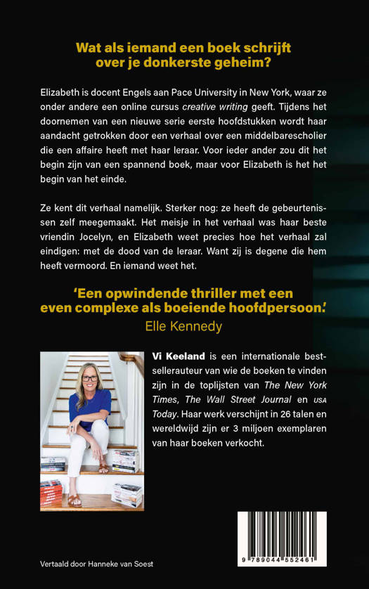 Ze kent dit verhaal namelijk. Sterker nog: ze heeft de gebeurtenissen zelf meegemaakt. Het meisje in het verhaal was haar beste vriendin Jocelyn, en Elizabeth weet precies hoe het verhaal zal eindigen: met de dood van de leraar. Want zij is degene die hem heeft vermoord. En iemand weet het.