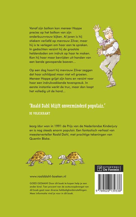 IEORG IDUR won in 1991 de Prijs van de Nederlandse Kinderjury. Een fantastisch kinderboek volledig in kleur van bestsellerauteur Roald Dahl, met prachtige tekeningen van bekroond illustrator Quentin Blake. Esio Trot werd verfilmd met in de hoofdrollen Dustin Hoffman en Judi Dench.