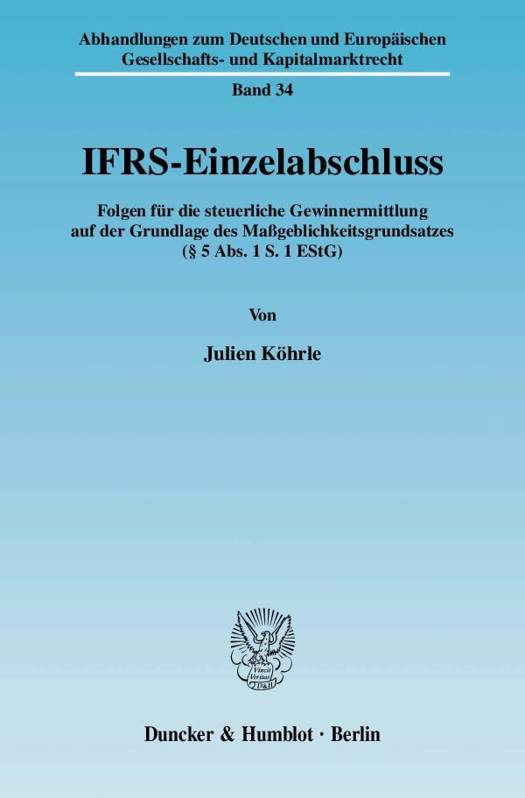 Köhrle kommt in seiner differenzierten Untersuchung dieser aktuellen Thematik, bei der auch auf die weit reichenden Änderungen des deutschen Bilanzrechts durch das Bilanzrechtsmodernisierungsgesetz (BilMoG) eingegangen wird, zu dem Ergebnis, dass die Vereinbarkeit einer steuerlichen Anknüpfung an den IFRS-Einzelabschluss (IFRS-Maßgeblichkeit) unter Vornahme einiger Anpassungen sowie der Einführung flankierender steuerrechtlicher Sondervorschriften möglich wäre.