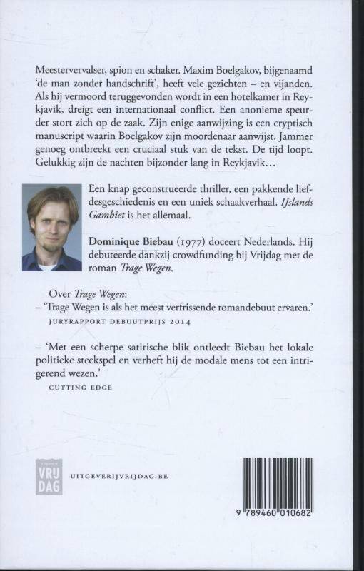 Meestervervalser, spion en schaker. Maxim Boelgakov, bijgenaamd 'de man zonder handschrift', heeft vele gezichten - en vijanden. Als hij vermoord teruggevonden wordt in een hotelkamer in Reykjavik, dreigt een internationaal conflict. Een anonieme speurder stort zich op de zaak. Zijn enige aanwijzing is een cryptisch manuscript waarin Boelgakov zijn moordenaar aanwijst. Jammer genoeg ontbreekt een cruciaal stuk van de tekst. De tijd loopt. Gelukkig zijn de nachten bijzonder lang in Reykjavik... Een knap geconstrueerde thriller, een pakkende liefdesgeschiedenis en een uniek schaakverhaal. IJslands Gambiet is het allemaal.