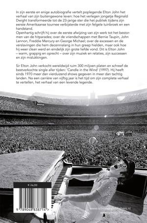 Openhartig schrijft hij over de eerste afwijzing van zijn werk tot het bestormen van de hitparades; over de vriendschappen met Bernie Taupin, John Lennon, Freddie Mercury en George Michael; over de excessen en de verslavingen die hem decennialang in hun greep hielden, maar ook hoe hij weer clean werd en eindelijk zijn grote liefde vond. Dit is Elton John - warm, grappig en oprecht - over zijn muziek en relaties, zijn successen en zijn mislukkingen.