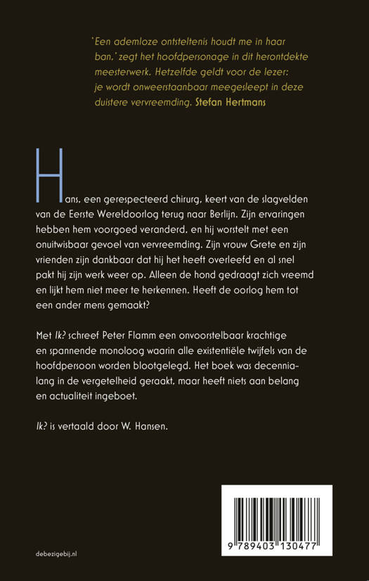 Met Ik? schreef Peter Flamm een onvoorstelbaar krachtige en spannende monoloog waarin alle existentiële twijfels van de hoofdpersoon worden blootgelegd.