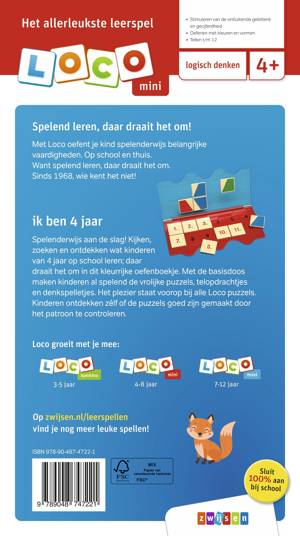 Spelenderwijs aan de slag! Kijken, zoeken en ontdekken wat kinderen van 4 jaar op school leren; daar draait het om in dit kleurrijke oefenboekje. Met de basisdoos maken kinderen al spelend de vrolijke puzzels, telopdrachtjes en denkspelletjes. Het plezier staat voorop bij alle Loco puzzels. Kinderen ontdekken zélf of de puzzels goed zijn gemaakt door het patroon te controleren.