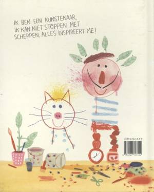 Ontmoet de jonge kunstenaar: Waar ik ook kijk, zie ik KUNST. Maar mijn moeder ziet dat anders. Ik zie: De eenzaamheid van de wortel. Mijn moeder ziet: Een niet leeggegeten bord. Ik zie: Uitzicht op de wereld. Mijn moeder ziet: Een gat in de muur. (Ik geloof niet dat ze me begrijpt.) Maar IK KAN NIET STOPPEN MET SCHEPPEN!
