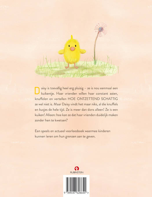 Daisy is toevallig heel erg pluizig – ze is nou eenmaal een kuikentje. Haar vrienden willen haar constant aaien, knuffelen en vertellen HOE ONTZETTEND SCHATTIG ze wel niet is. Maar Daisy vindt het maar niks, al die knuffels en kusjes de hele tijd. Ze is meer dan dons alleen! Ze is een kuiken! Alleen: hoe kan ze dat haar vrienden duidelijk maken zonder hen te kwetsen?