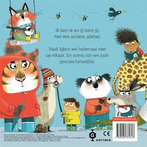 'Ik ben ik en jij bent jij' is een luchtig en humoristisch verhaal over verschillen en overeenkomsten, en is knap op rijm vertaald door Bette Westera. Dit vrolijke prentenboek van karton gaat over verschillen en overeenkomsten. Karl Newson weet de thema's acceptatie en tolerantie subtiel door te laten schemeren, terwijl humor de boventoon blijft voeren. Jij bent zus en ik ben zo, en dat is prima. En in sommige dingen zijn we juist hetzelfde, dat is grappig!