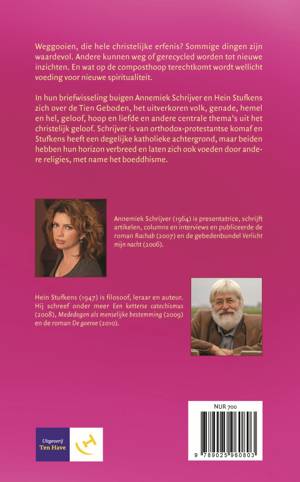 In hun briefwisseling buigen Annemiek Schrijver en Hein Stufkens zich over de Tien Geboden, het uitverkoren volk, genade, hemel en hel, geloof, hoop en liefde, en andere centrale thema?s uit het christelijk geloof. Schrijver is van orthodox-protestantse komaf en Stufkens heeft een degelijke katholieke achtergrond, maar beiden hebben hun horizon verbreed en laten zich ook voeden door andere religies, met name het boeddhisme.
