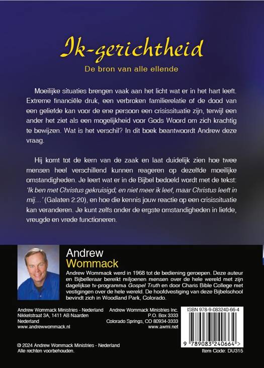 Ik-gerichtheid: de bron van alle ellende. Moeilijke situaties brengen vaak aan het licht wat er in het hart leeft. Extreme financiële druk, een verbroken familierelatie of de dood van een geliefde kan voor de ene persoon een crisissituatie zijn, terwijl een ander het ziet als een mogelijkheid voor Gods Woord om zich krachtig te bewijzen. Wat is het verschil? In dit boek beantwoordt Andrew deze vraag.