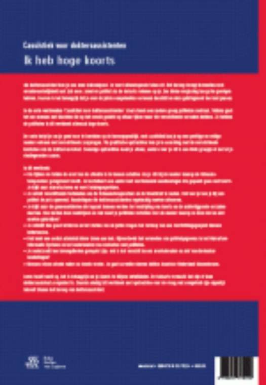Als doktersassistent ben je een ware duizendpoot. Je voert uiteenlopende taken uit. Het beroep brengt bovendien veel verantwoordelijkheid met zich mee: zowel de patiënt als de huisarts rekenen op je. Een kleine vergissing kan grote gevolgen hebben. Daarom is het belangrijk dat je over de juiste competenties en kennis beschikt en deze geïntegreerd toe kunt passen.In de serie werkboeken ‘Casuïstiek voor doktersassistenten’ staat steeds een andere groep patiënten centraal. Telkens gaat het om mensen met klachten die op het eerste gezicht op elkaar lijken maar die verschillende oorzaken hebben. Zo hebben de patiënten in dit werkboek allemaal hoge koorts.De serie helpt je om je goed voor te bereiden op de beroepspraktijk, met casuïstiek kun je op een prettige en veilige manier oefenen met verschillende zorgvragen. Via praktische opdrachten kom je in aanraking met de verschillende kerntaken van de doktersassistent. Sommige opdrachten maak je alleen, andere voer je uit in een klein groepje of met al je studiegenoten samen.In dit werkboek: • Om tijdens de intake de ernst van de situatie in te kunnen schatten sta je stil bij de manier waarop de lichaamstemperatuur gereguleerd wordt. Je bestudeert een aantal veel voorkomende aandoeningen die gepaard gaan met koorts. Je kijkt naar alarmfactoren en voert intakegesprekken.• Je oefent verschillende technieken om de lichaamstemperatuur en de bloeddruk te meten. Ook leer je hoe je bij een patiënt de pols opneemt. Handelingen die doktersassistenten regelmatig moeten uitvoeren.• Je kijkt naar de geneesmiddelen die ingezet kunnen worden ter bestrijding van koorts en de achterliggende oorzaken daarvan. Hoe werken deze medicijnen en wat moet je patiënten vertellen over de manier waarop ze deze wel en niet moetengebruiken?• Je ontdekt hoe goed luisteren en het stellen van de juiste vragen het verloop van een voorlichtingsgesprek kunnen beïnvloeden.• Ook komt een aantal administratieve taken aan bod. Bijvoorbeeld het verwerken van patiëntgegevens in het Huisartsen Informatie Systeem en het onderhouden van contacten met patiënten.• Je onderzoekt hoe bevoegdheden geregeld zijn: wat is het verschil tussen voorbehouden en niet voorbehouden handelingen?• Mensen reizen steeds vaker en steeds verder. Je gaat na welke nieuwe ziektes daardoor Nederland binnenkomen.Leren houdt nooit op, het is belangrijk om je steeds te blijven ontwikkelen. De huisarts verwacht dat zijn of haar doktersassistent competent is. Daarom eindigt dit werkboek met opdrachten over de vraag wat competent-zijn eigenlijk inhoudt binnen het beroep van doktersassistent.