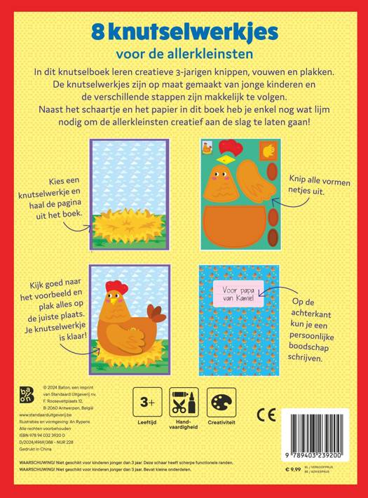 De 8 knutselwerkjes zijn gemaakt op maat van jonge kinderen en de verschillende stappen zijn makkelijk te volgen. Je hebt alleen nog een beetje lijm nodig om de knutselwerkjes tot een goed einde te brengen. De schaar bevat een veer om het knippen te vergemakkelijken. Voor uren knutselplezier!