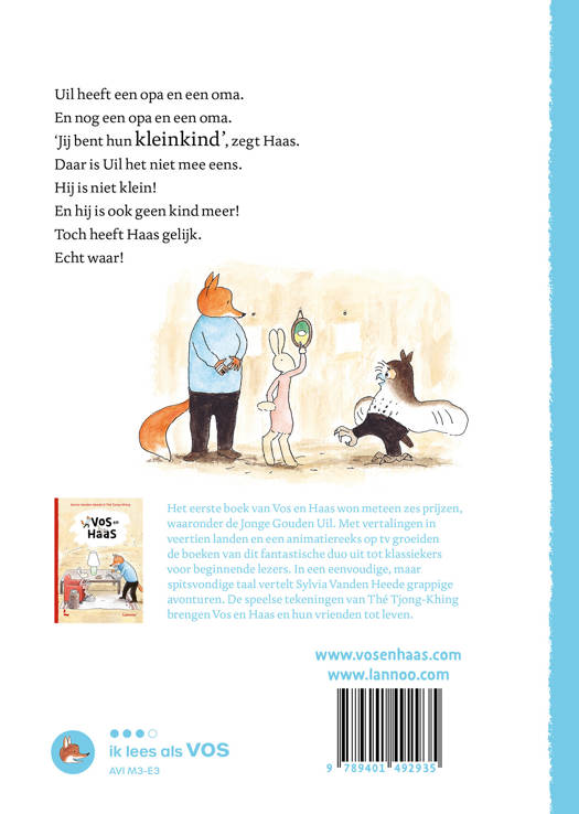 Uil heeft een opa en een oma. En nog een opa en een oma. 'Jij bent hun kleinkind', zegt Haas. Daar is Uil het niet mee eens. Hij is niet klein! En hij is ook geen kind meer! Toch heeft Haas gelijk. Echt waar!